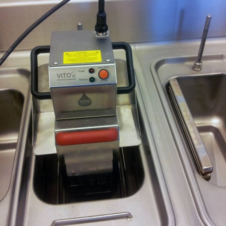De Vito-50 Frituurolie-filtratiemachine voor het filteren van frituuroliën- en vetten. Met dit systeem bespaar je 40-60% op de kosten van frituurolie/vet. Elke dag aan het eind van de dag in de frituurpan zetten. De cyclus duurt voor de Vito slechts 5 minuten, en alle vuile deeltjes worden eruit gefiltreerd.